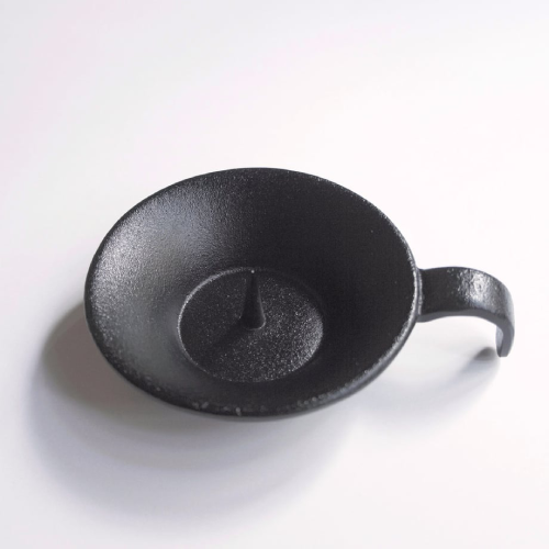 小さな持ち手が付いているシンプルな燭台です。南部鉄の燭台は重みがあり、ろうそくが安定します。