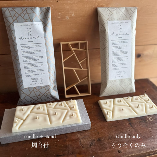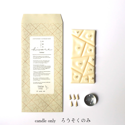 主原料は植物ロウ、芯は和紙と灯芯草という特長をそのままに、日本の伝統的な文様「氷割れ」をモチーフにした和ろうそくです。