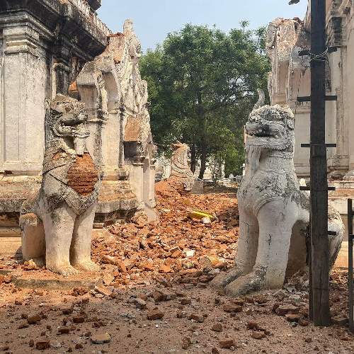 ザガインは、エーヤワディ―川を挟みマンダレーの対岸に位置します。エーヤワディー川中流域の政治・経済・交通の中心地であり、「第二のバガン」とも呼ばれ、大小1000を超えるパゴダ(仏塔)が立ち並びます。両市ともにこの地震によりライフラインはもちろん、心の寄り処となる伝統的な僧院も倒壊、内陸では40度を超える日が続き、通信遮断や停電に加えあちこちで火災も発生するなど、住民は不安と恐怖に怯えながら救援を待っています。